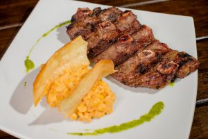 Prato Beef Week: Prime Week – Prime Rib grelhado ao molho roti, batata doce caramelizada e queijo coalho assado acompanhado de arroz.