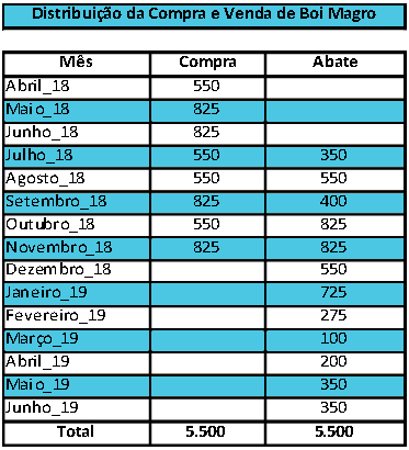 Neste momento, gostaria de apresentar a estratégia do nosso case. Optamos por distribuir a compra e venda de animais em todos os meses do ano com o objetivo de gerar receitas recorrentes. Assim, em todos os meses passamos a ter boi gordo sendo vendido e evitamos, ao máximo, o desajuste entre entradas e saídas. A consequência desta estratégia é também uma menor necessidade de capital de giro (aquele dinheiro que você precisa ter todos os meses para continuar a operação).