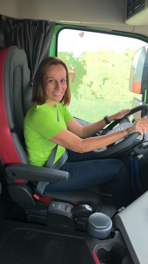 Nós contamos que ela está aprendendo a dirigir rodotrens, aqueles caminhões enormes, compostos por um cavalo mecânico e dois ou mais semirreboques e que ela encontrou um novo hobbie, o ciclismo?