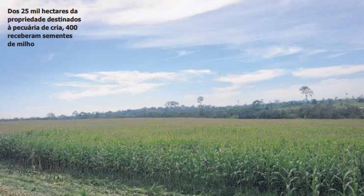 A primeira propriedade a adotar o modelo de produção está localizada em Juruena, na região Noroeste do Estado. Dos 25 mil hectares destinados à pecuária de cria, 400 receberam sementes de milho. O investimento inicial para deslanchar o projeto demandou investimentos de R$ 1,5 milhão. O valor custeou as despesas com o preparo da terra para receber a cultura, além do pacote tecnológico para plantar (insumos, adubos e sementes de milho).