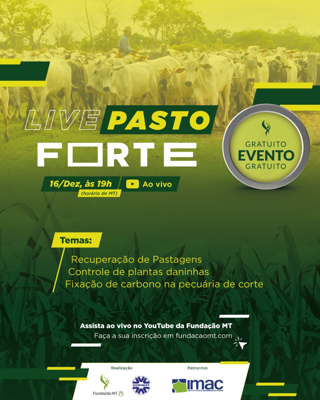 Acrimat e Fundação MT realizam live para apresentar impactos do projeto Pasto Forte Leia mais » 16 de dezembro de 2021