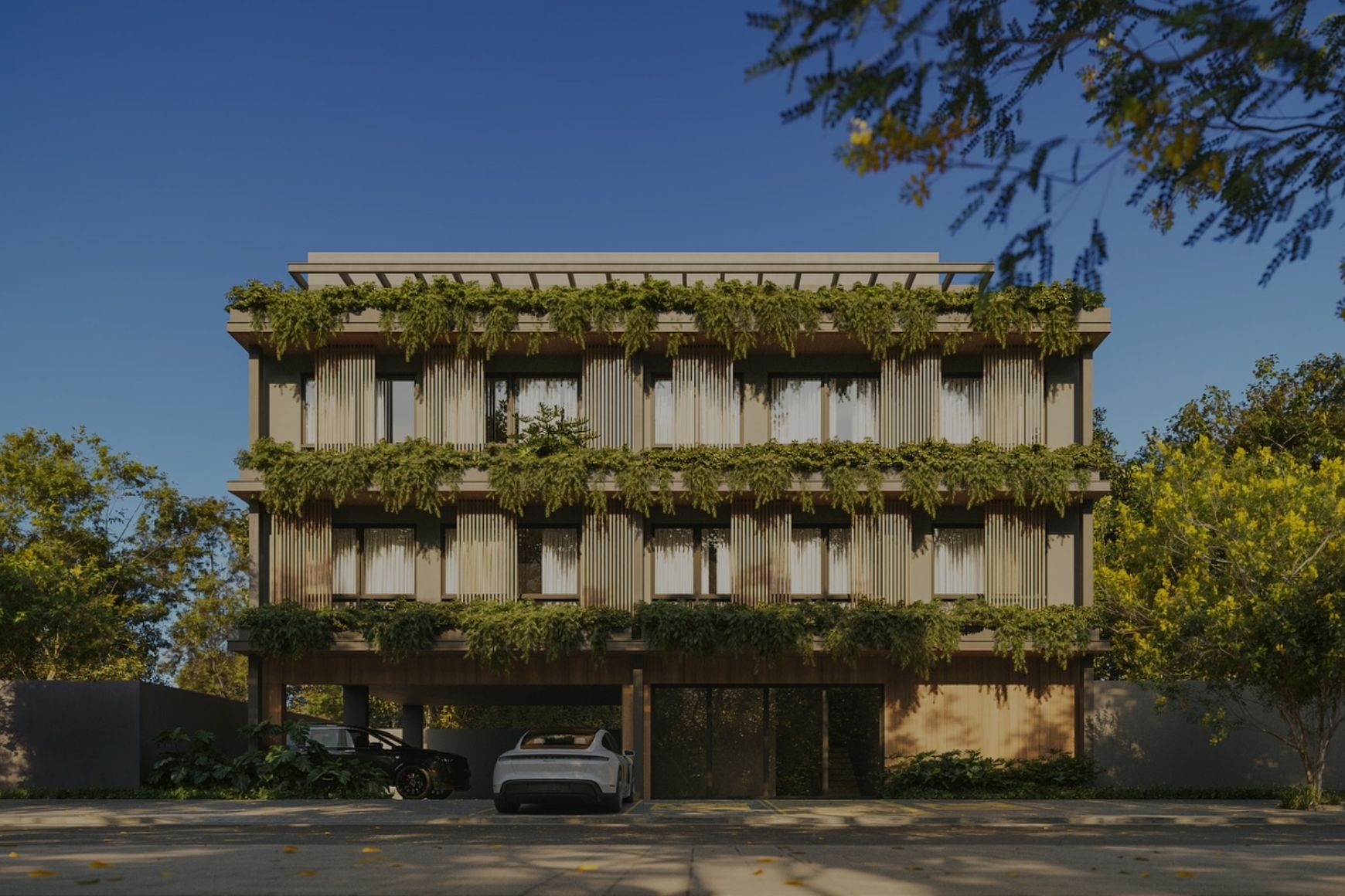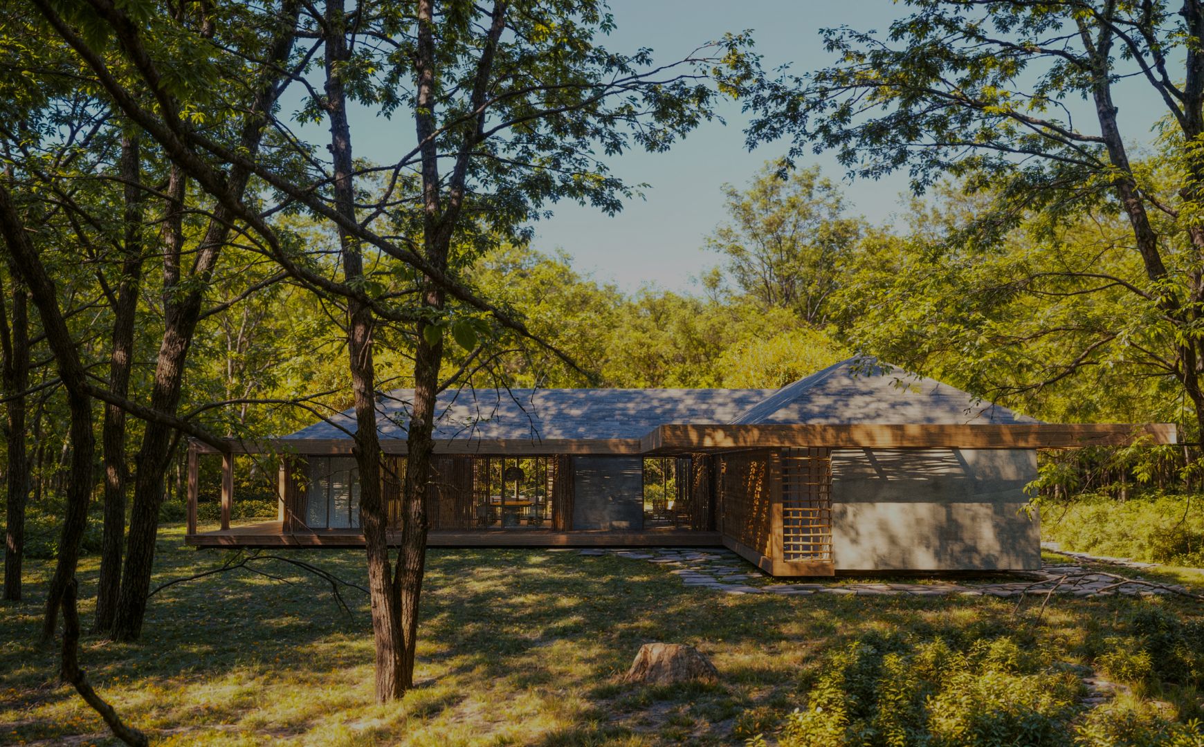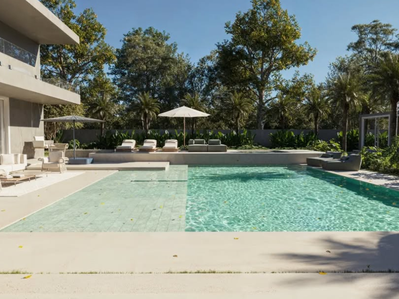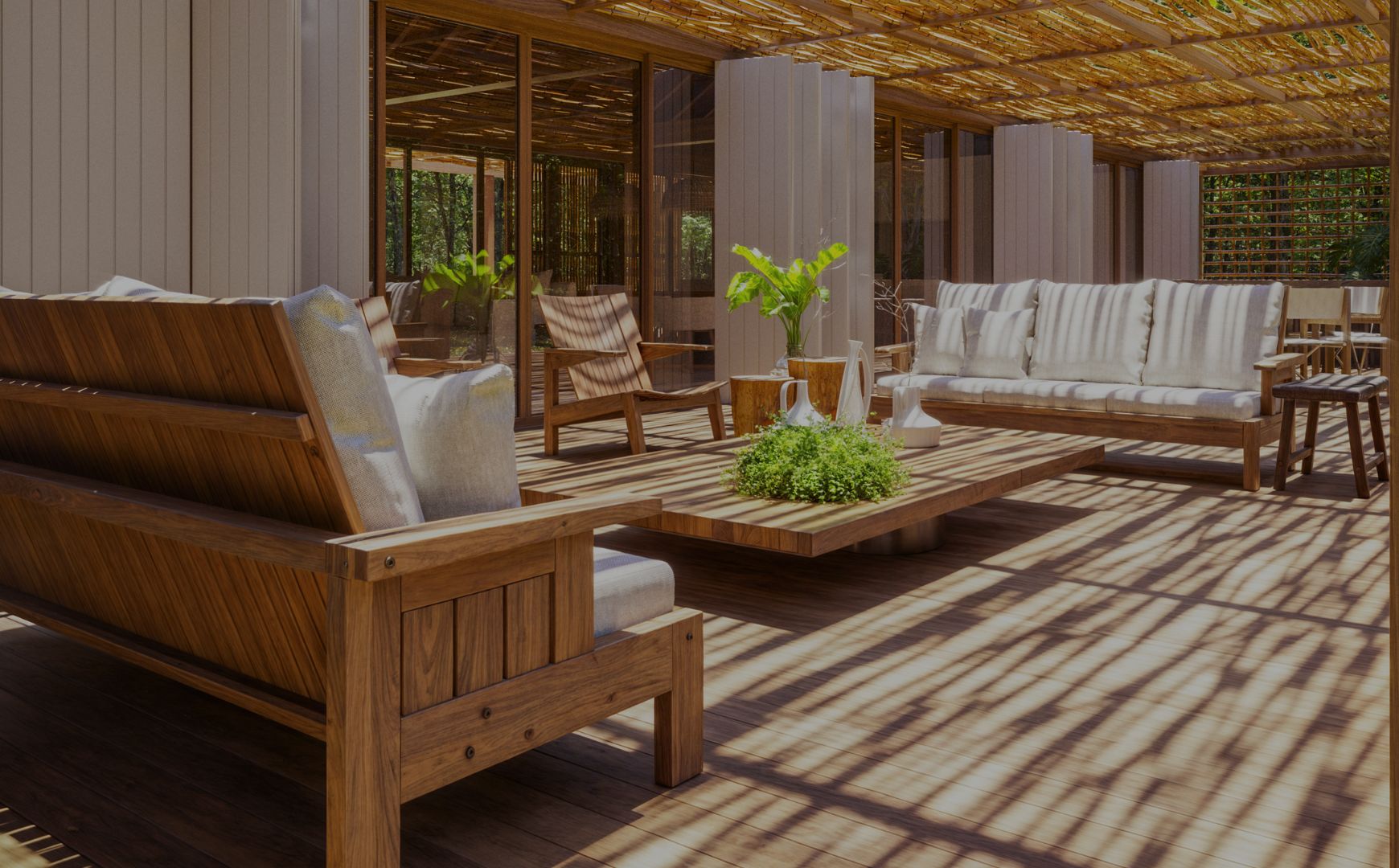 O render 3D realista transmite a integração da arquitetura com a natureza, utilizando elementos como vidro, madeira e iluminação natural para criar uma atmosfera acolhedora e sofisticada.Projeto desenvolvido pelo estúdio Whitehouse CGI Studios em colaboração com o Studio Otto Félix.