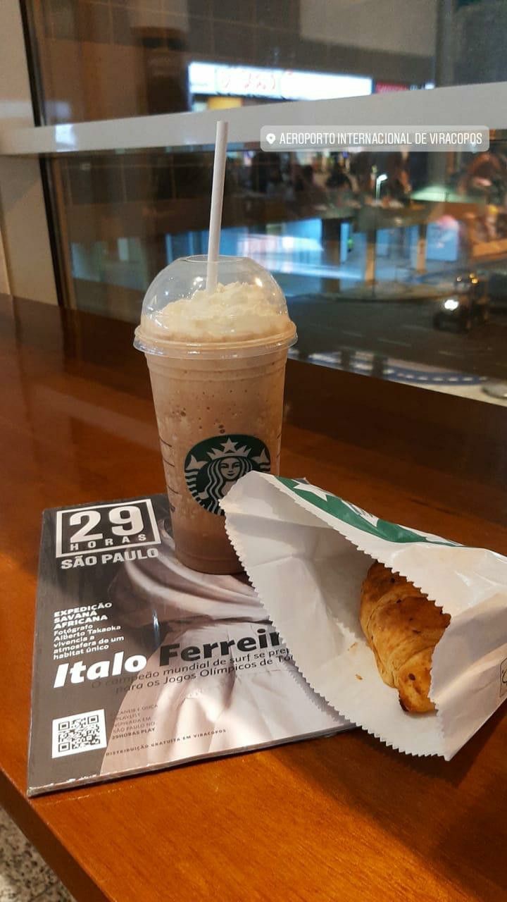 Café no aeroporto indo para Lua de Mel